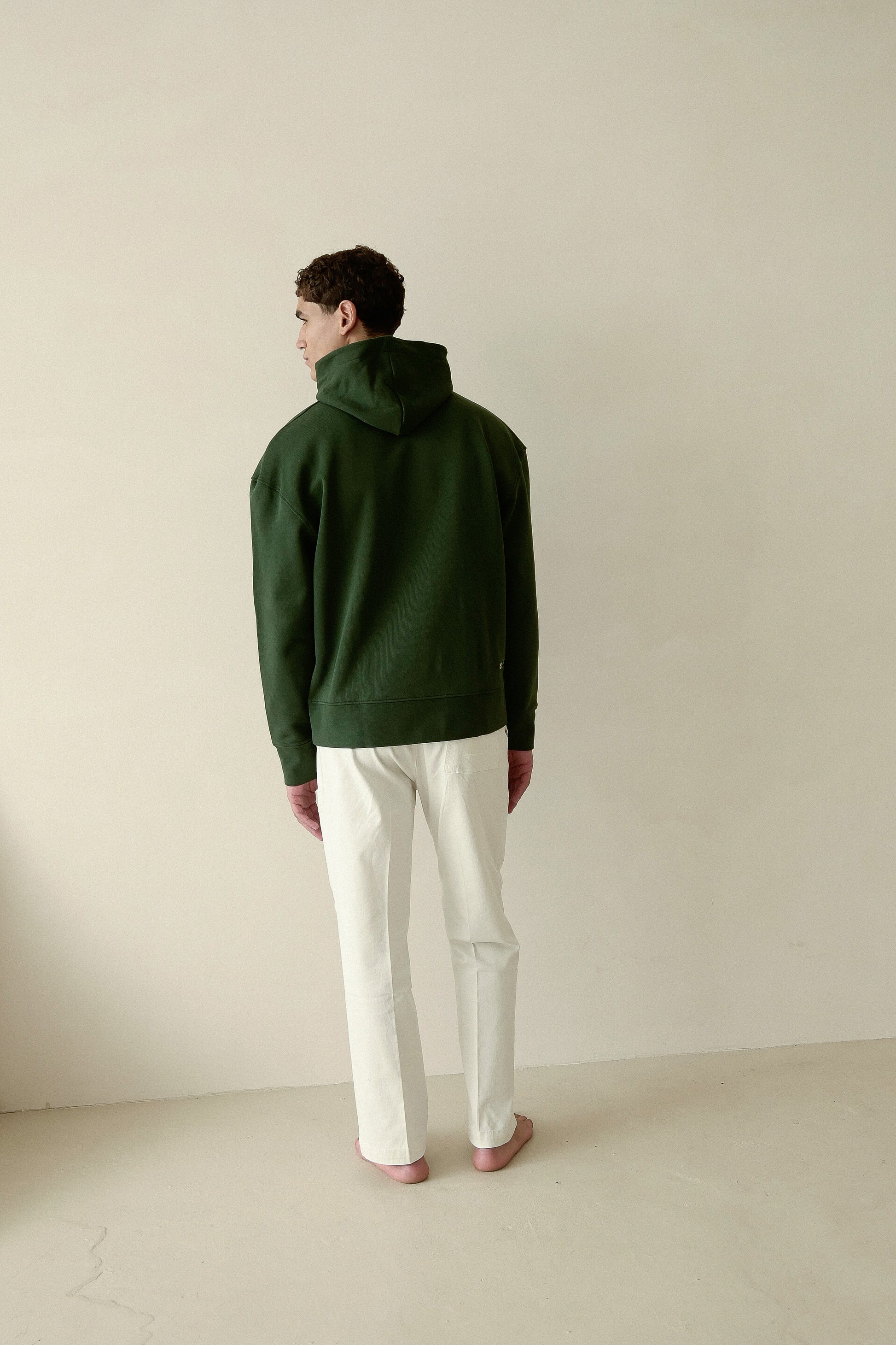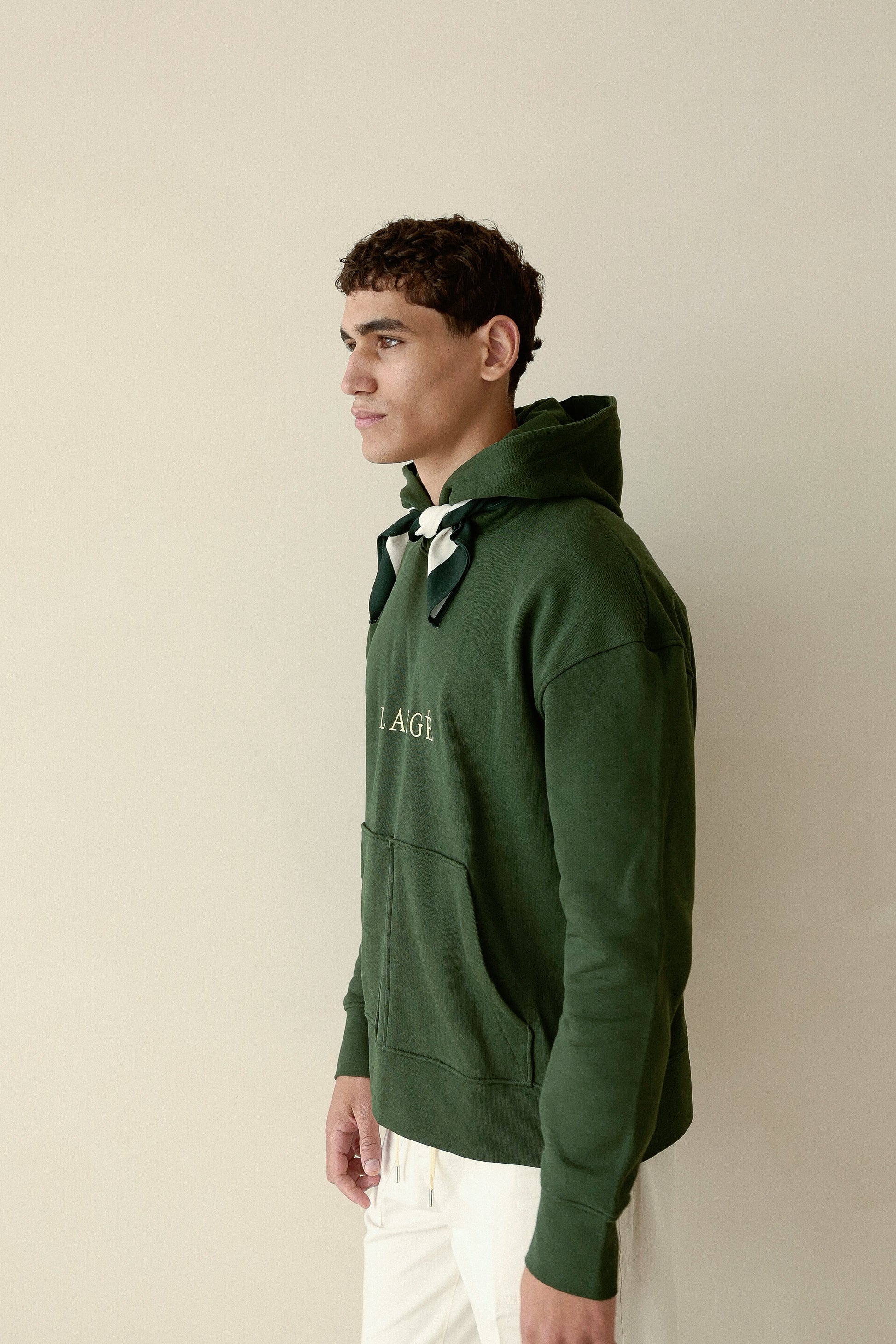 Made from sustainably sourced organic cotton, this dark green hoodie has a relaxed fit, a soft brushed finish. The dropped shoulders add extra comfort. Highlighted with Kangaroo pockets, this Hoodie is made to live in it.
