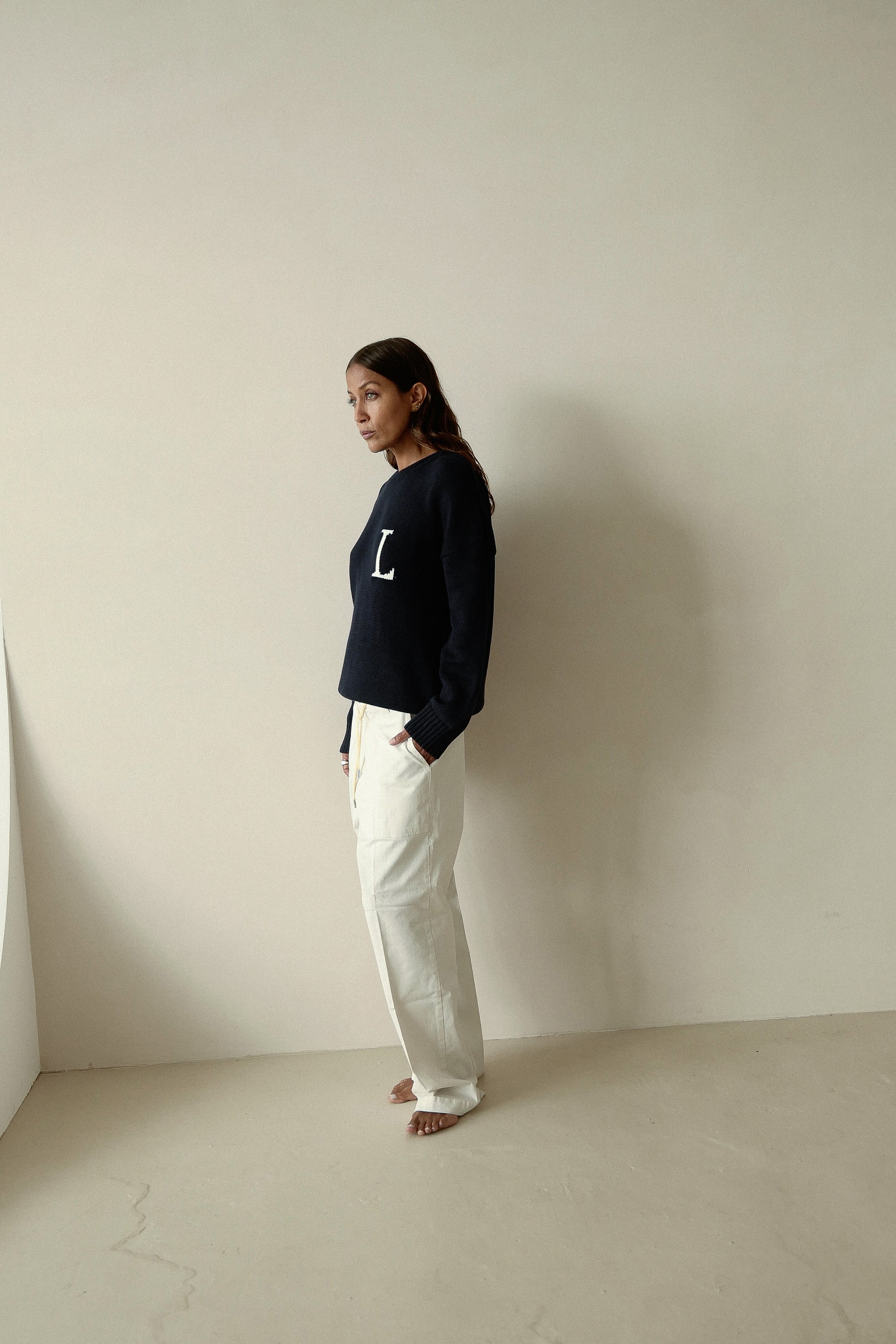 Made from high-weight organic cotton in classic navy blue, this regular-fit sweater has an elegant neck, a concealed ribbed knit pattern and minimalist seam detailing at the chest. The trademark Patch on the back is added. Dropped shoulders and fine finished lines round off the look.