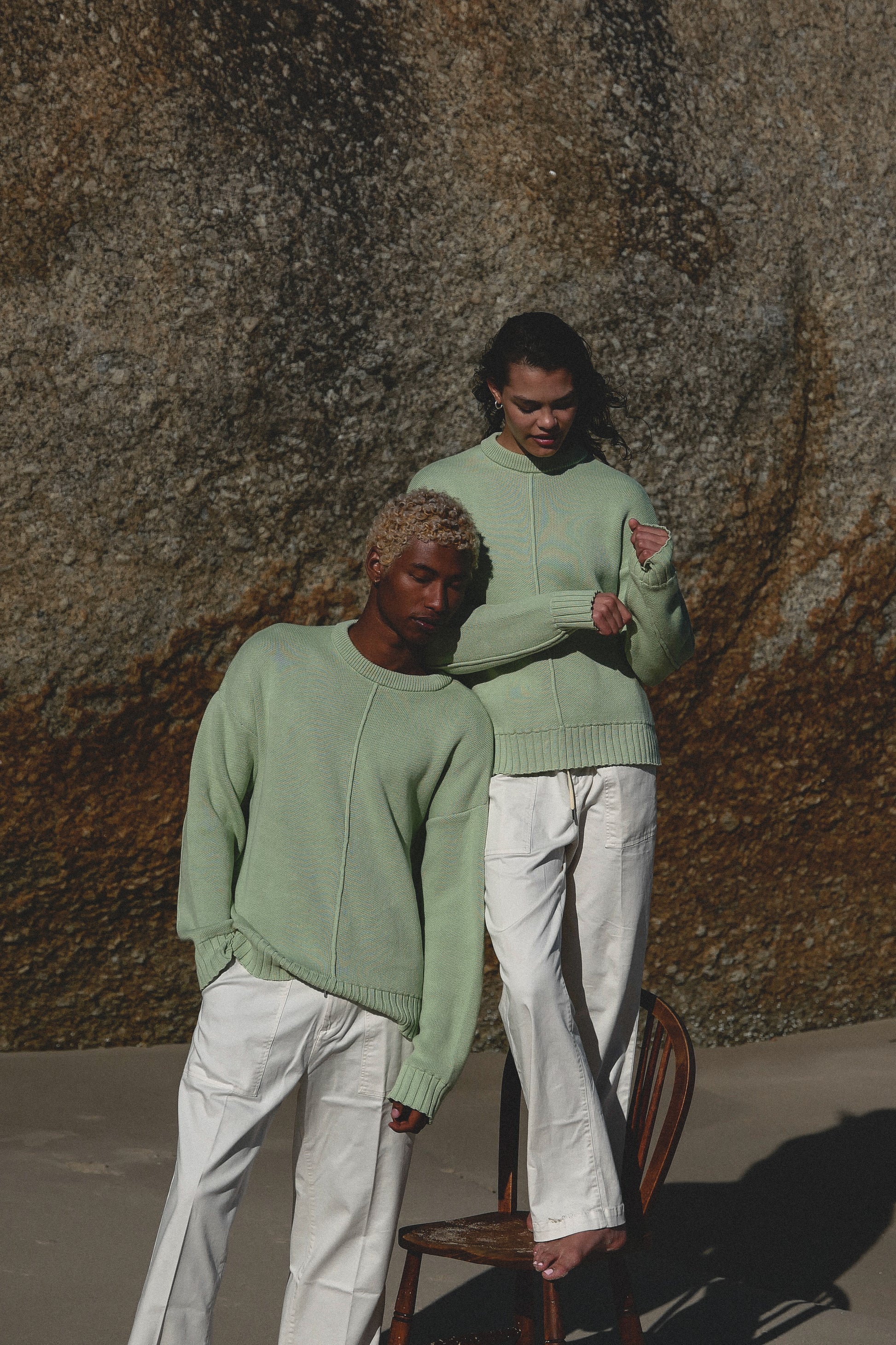 Our Crewneck sweater is coming in a relaxed boxy fit, made from the finest cotton fabricated Europe. A pistachio colorway, inspired by green of nature.