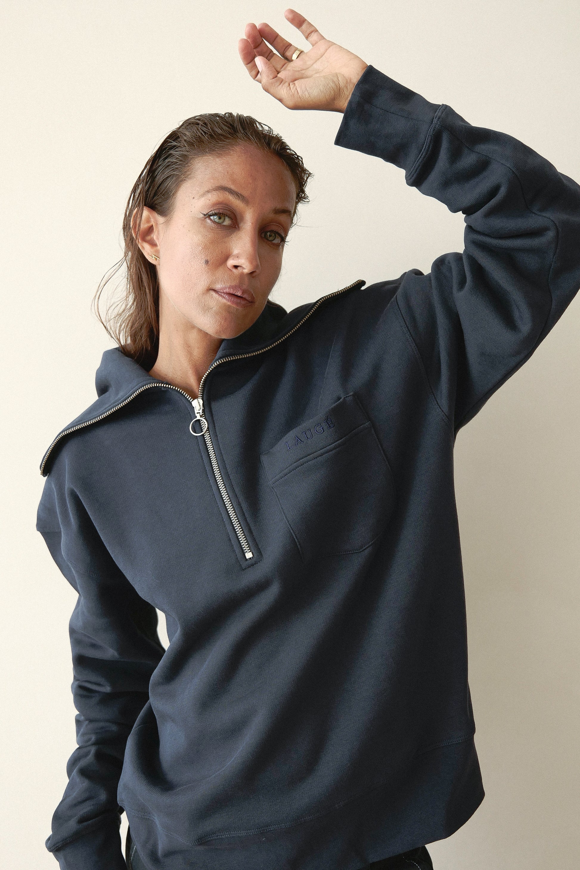 A personal favourite of the brand. Effortless, stylish and elegant, the Quarter-Zip comes with fine details and a timeless fit. The oversized Zip allows to play with different looks. From elegant closed - to more casual, when opened.
